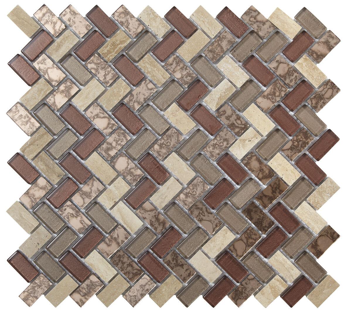 Pence Copper Herringbone Glass & Stone Mosaic Tile - 300x280mm