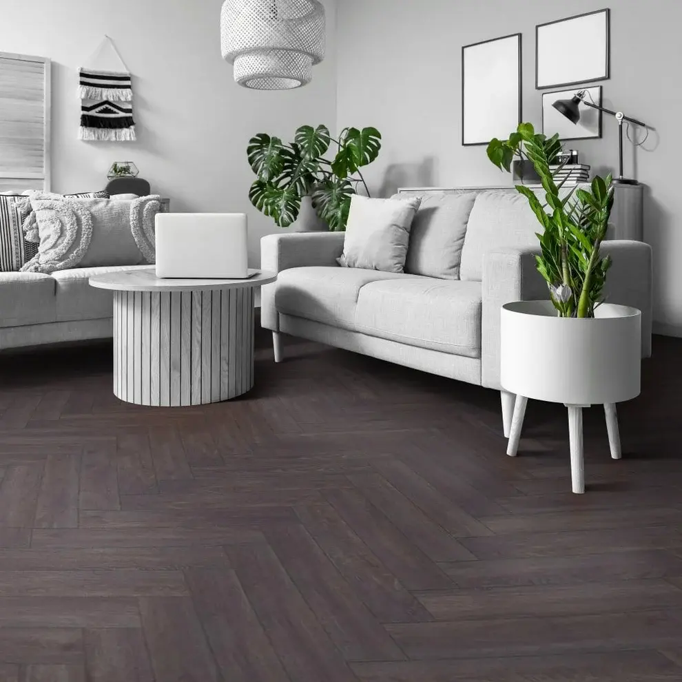 The Herringbone collection from Liberty Floors offers a stylish and versatile parquet-effect laminate that’s designed to transform interiors with its on-trend herringbone layout. The Elba Oak Black finish brings a contemporary edge with its deep tones, making it perfect for creating a dramatic yet sophisticated flooring statement.