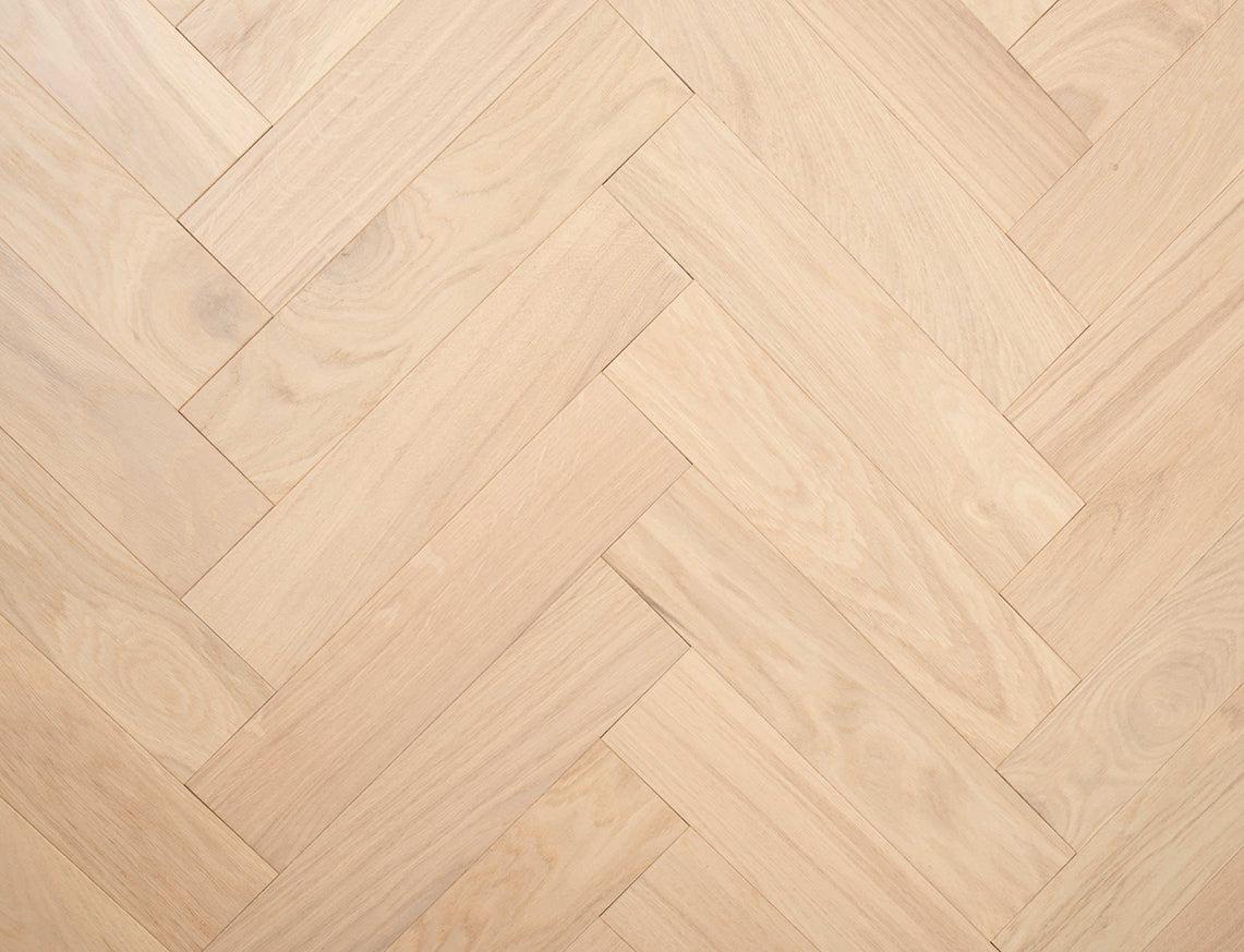 Light oak herringbone flooring with an invisible oiled finish. Select grade engineered oak for a natural, elegant look with long-lasting durability.