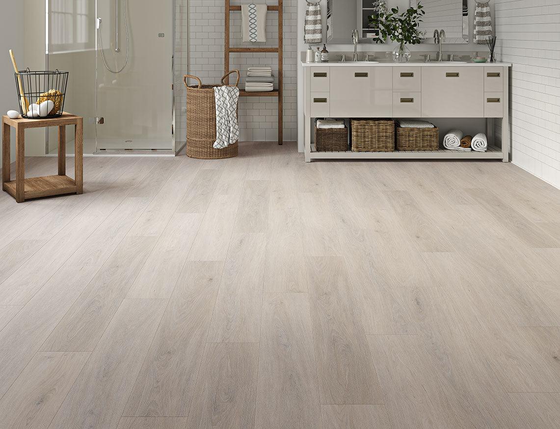 Light grey oak SPC vinyl flooring in a 1220x180mm straight plank design with a 5mm rigid core and 25-year warranty. Waterproof, durable, and easy to install—ideal for kitchens, bathrooms, and living spaces.