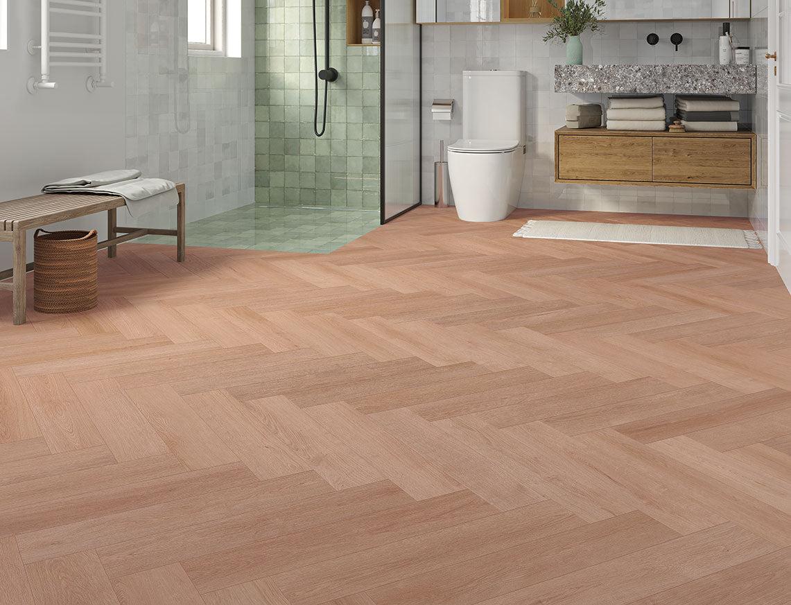 The EURO Light Brushed Oak Herringbone SPC LVT offers the best of both worlds: the style of traditional oak parquet with the durability of modern waterproof vinyl.