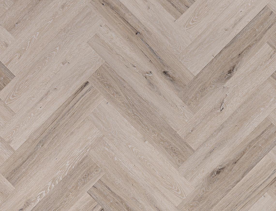 EURO Whitewashed Grey Oak Herringbone SPC LVT – 5mm Rigid Core