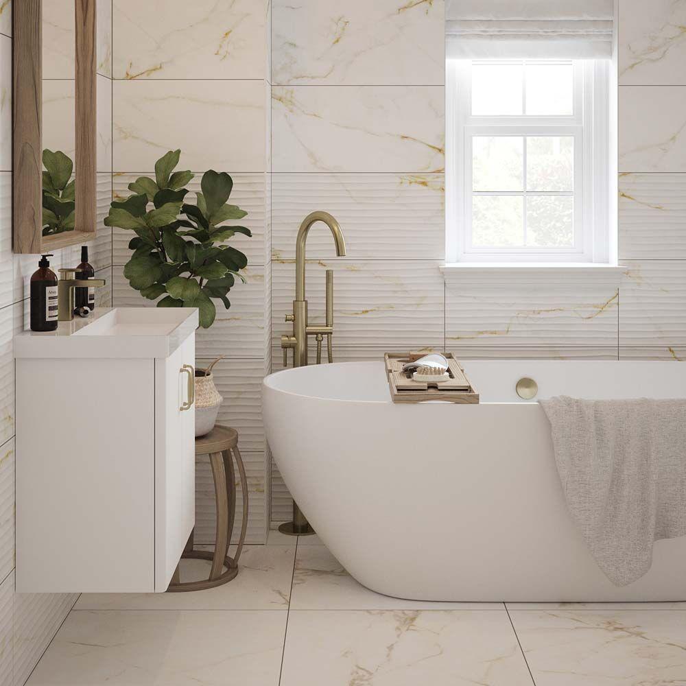 The Goldman Matt Porcelain Tile (600x600x9.5mm) delivers the beauty of marble with the durability and practicality of porcelain. Featuring a crisp white base enhanced by delicate golden-grey veining, it brings a touch of sophistication and luxury to any interior.