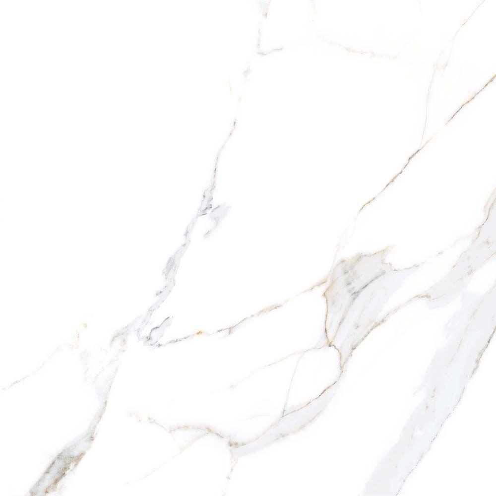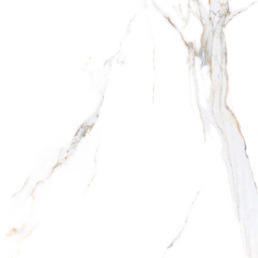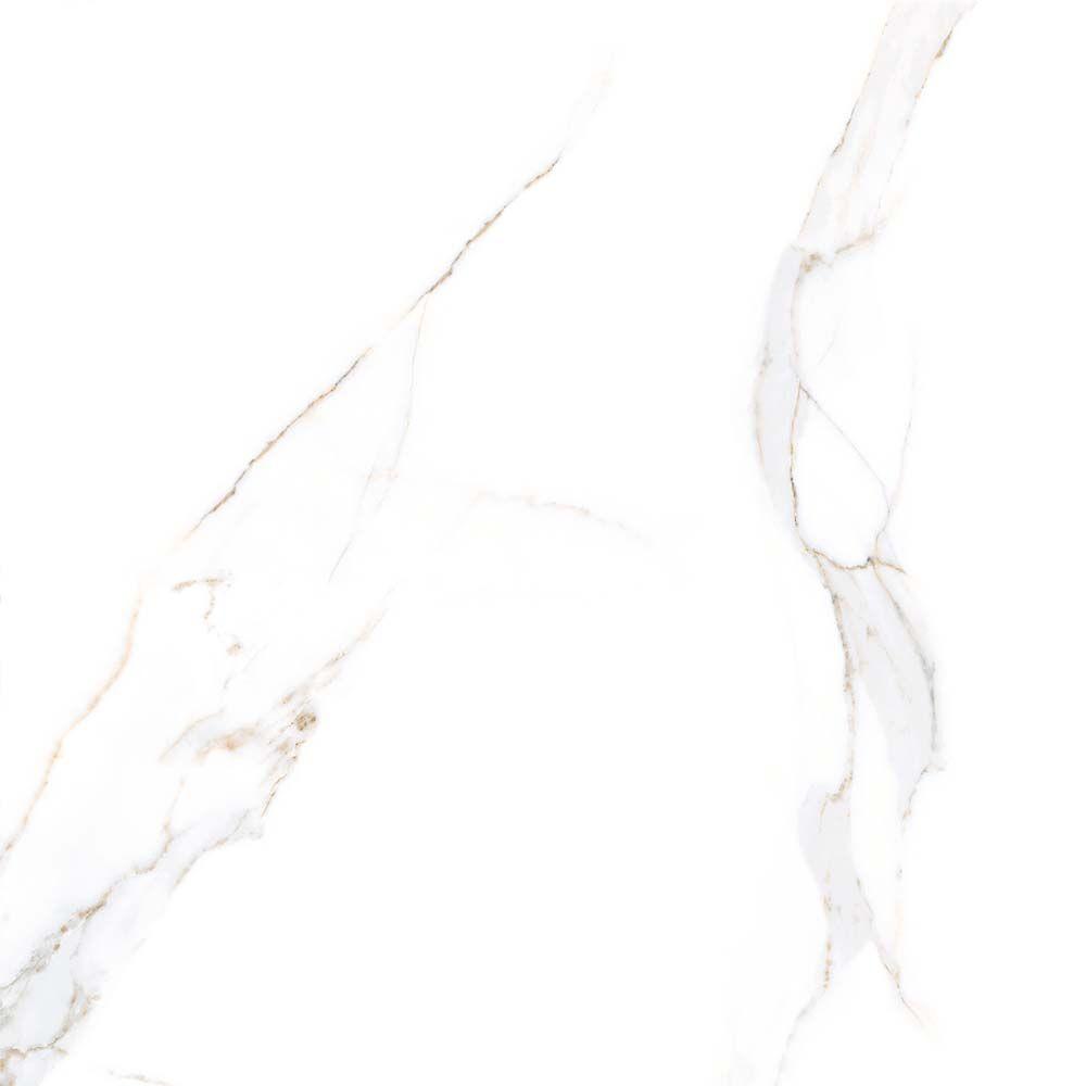 The Hannah Glazed Porcelain Tile (1000x1000x11.5mm) captures the timeless elegance of marble in a durable, polished porcelain format. Its crisp white background is accentuated by striking grey and golden veining, creating a bold and luxurious statement for any interior.
