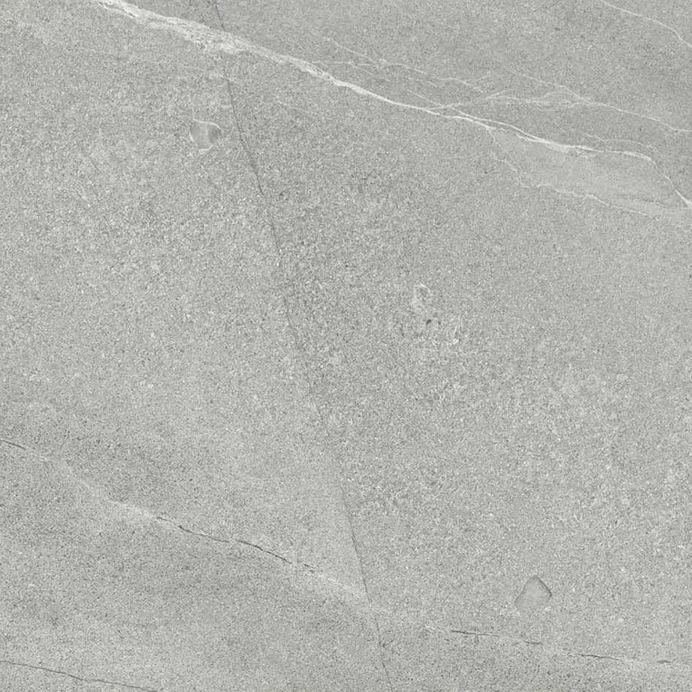 Stone-effect grey glazed porcelain tile with a soft matt finish, suitable for both walls and floors in kitchens, bathrooms, and modern living spaces.
