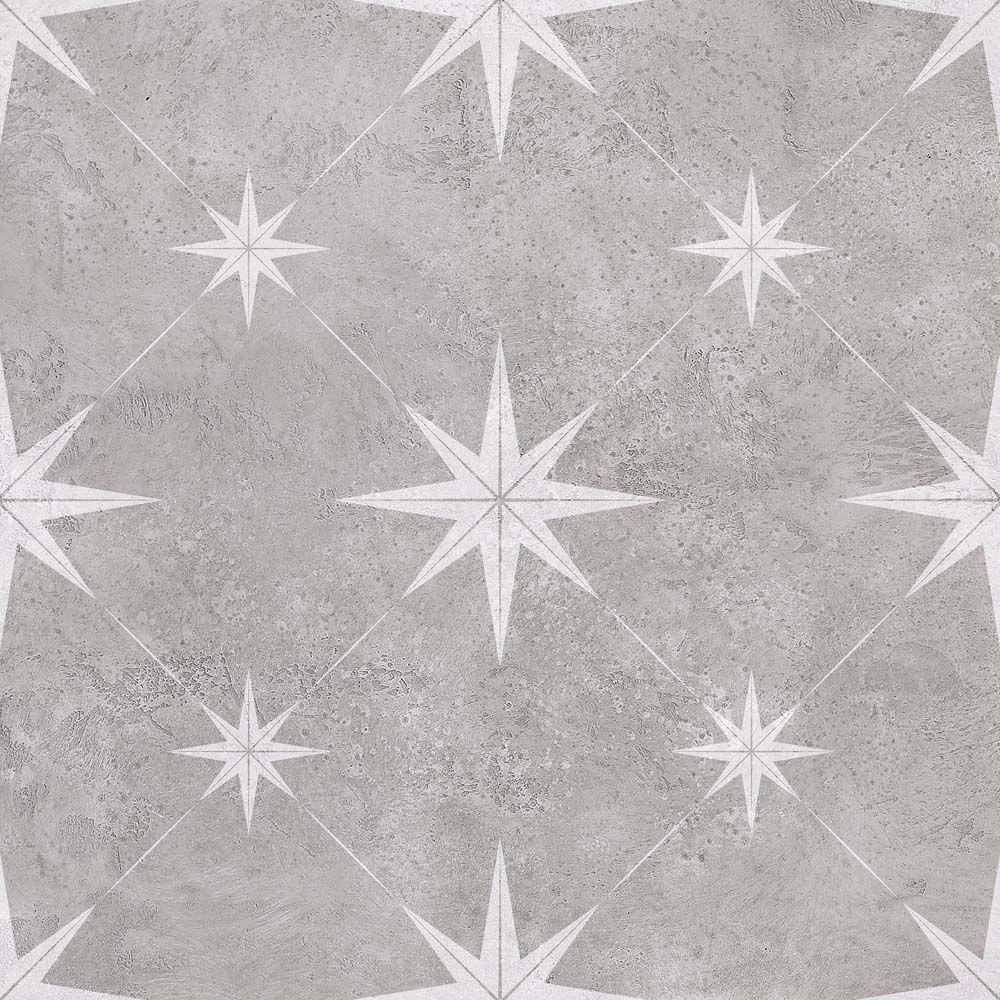 Bring timeless style to your interiors with the Vincent Grey Patterned Vitrified Ceramic Tile (335x335mm). Featuring a delicate geometric star pattern in soft grey and white, this tile adds character and personality to any space.