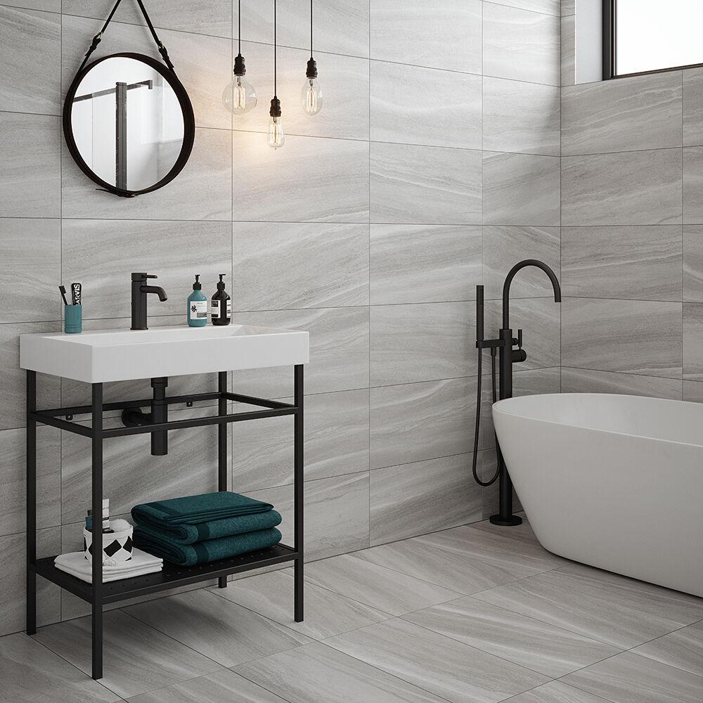 A versatile grey porcelain tile with a matt finish and natural stone effect, perfect for walls and floors in modern interiors.