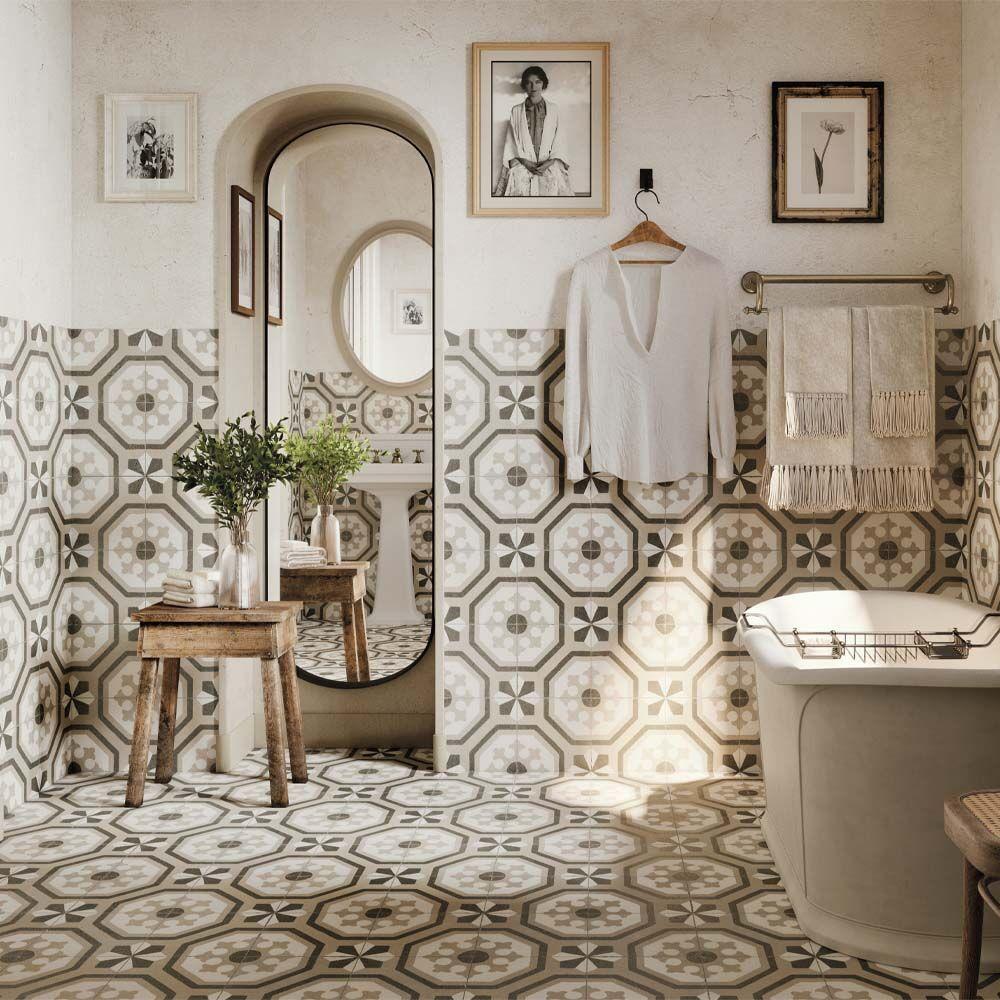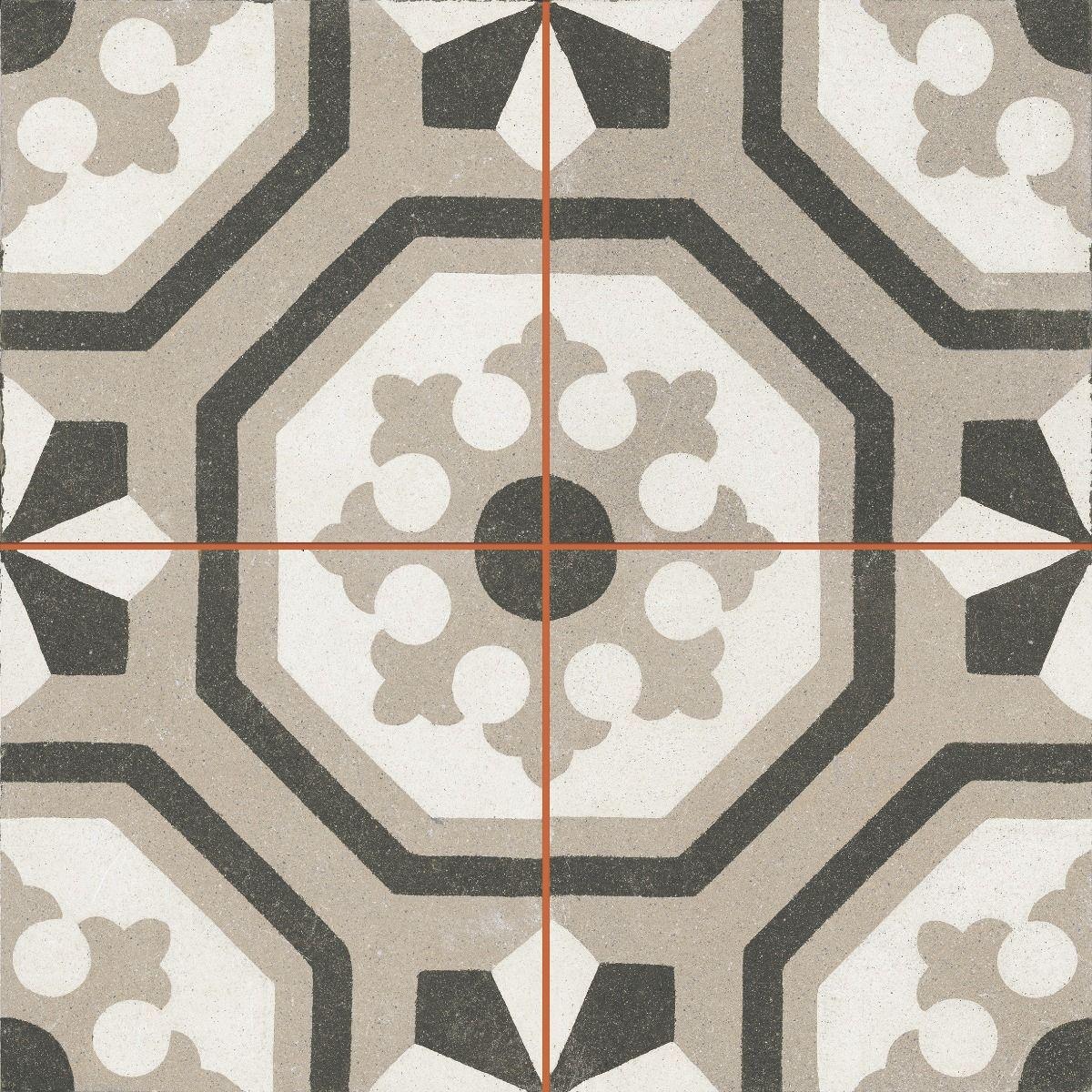 Stylish grey patterned ceramic tile with a matt finish—perfect for vintage-inspired walls and floors.